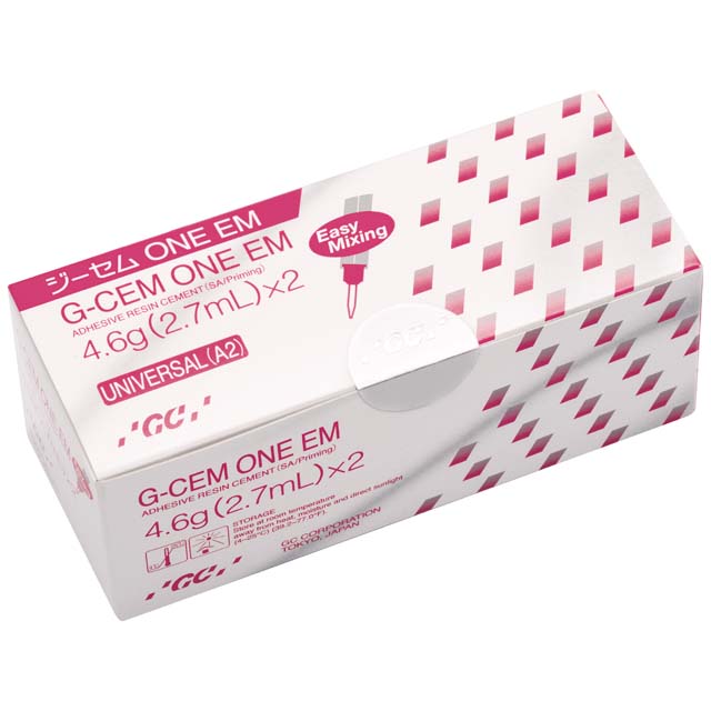 ●商品コード: 8209864●入数: 1ケース●セット内容: シリンジ(2.7mL)×2、EMミキシングチップT×15、EMミキシングチップF×5、EMミキシングチップF用ノズルRC×5、テクニカルチャート×1●販売名: ジーシー ジーセム ONE EM●薬事表示番号: 医療機器認証番号301AKBZX00021000