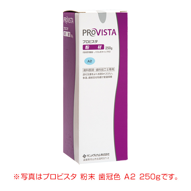 ●商品コード: 2240184●入数: 1本●種類: 粉末●タイプ: 歯冠色●内容量: 250g●シェード: A3●販売名: プロビスタ●薬事表示番号: 医療機器認証番号220AFBZX00245000