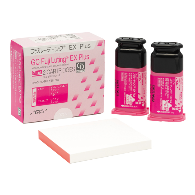 ●商品コード: 8203090●入数: 1セット●カラー: ライトイエロー●セット内容: カートリッジ13.3g(7.2mL)×2、練和紙(No.22)×1●販売名: ジーシー フジルーティング EX Plus●薬事表示番号: 医療機器認証番号305AKBZX00044000
