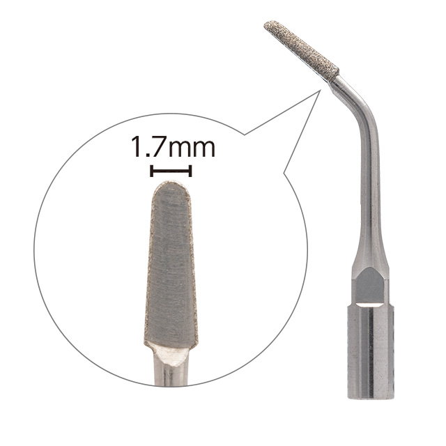 臼歯部隣接面の遠心の形成に適したチップです。半円筒形状のため、優れたコントロールが得られます。