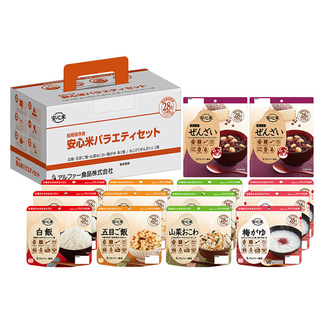 お湯や水で調理できて長期保存可能な非常食のバラエティセットです