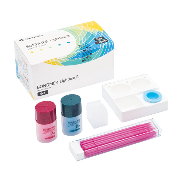 ●商品コード: 7722948●入数: 1セット●種類: セット●セット内容: A液(3ml)・B液(2.4ml)・ボンドマー用混和皿×各1、1穴ディスポ混和皿×5、ミニブラシ(ファイン)×25●販売名: ボンドマー ライトレス2●薬事表示番号: 医療機器認証番号303AFBZX00024000