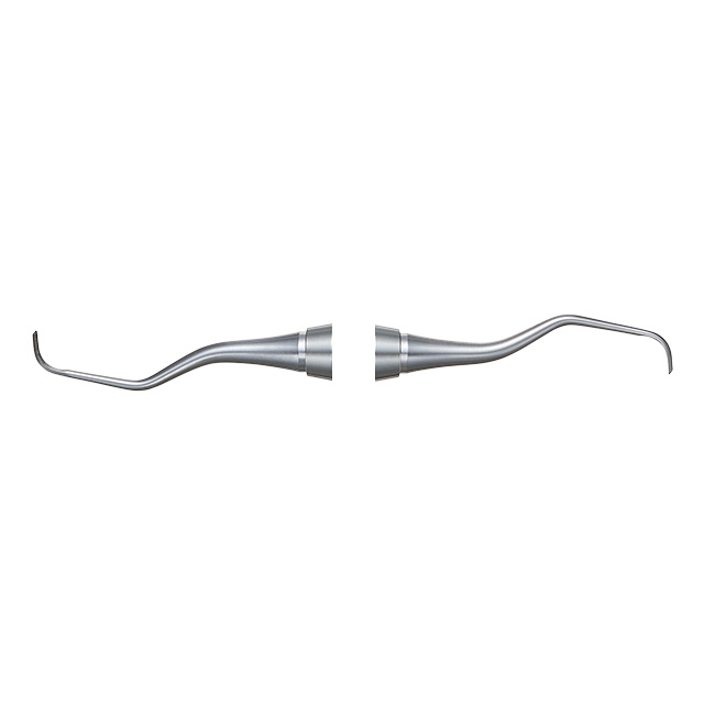 ブレード部が小さく、第1シャンクが長いため、狭く深いポケットへの挿入や、隅角部、根分岐部での操作がしやすいです。強固な歯石にも対応し、超音波スケーリング後の取り残しにも有効です。