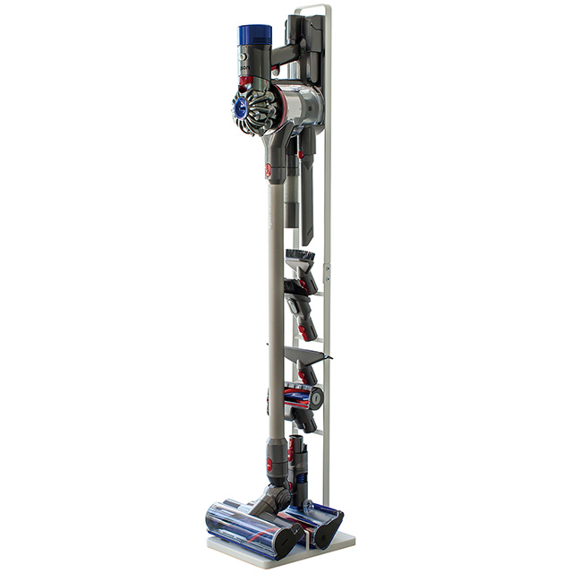 壁に穴を開けずにコードレスクリーナーをスリムに収納できる便利なスタンド