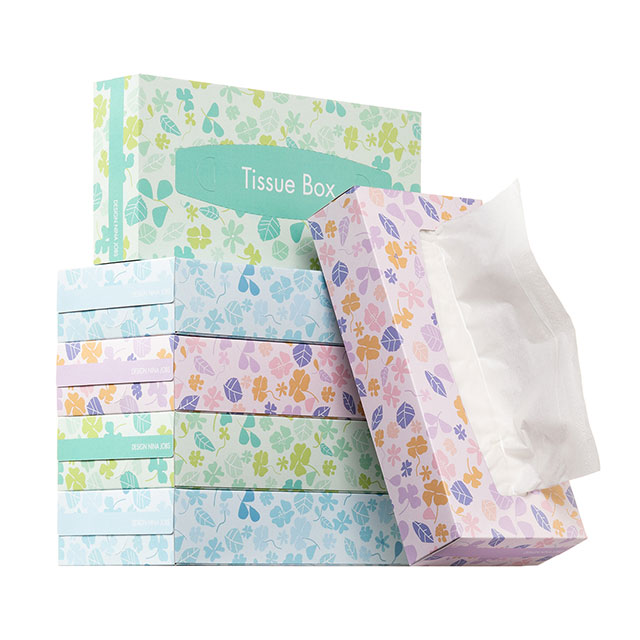 バージンパルプ100%でふんわり柔らかな品質の国産ティッシュペーパー。