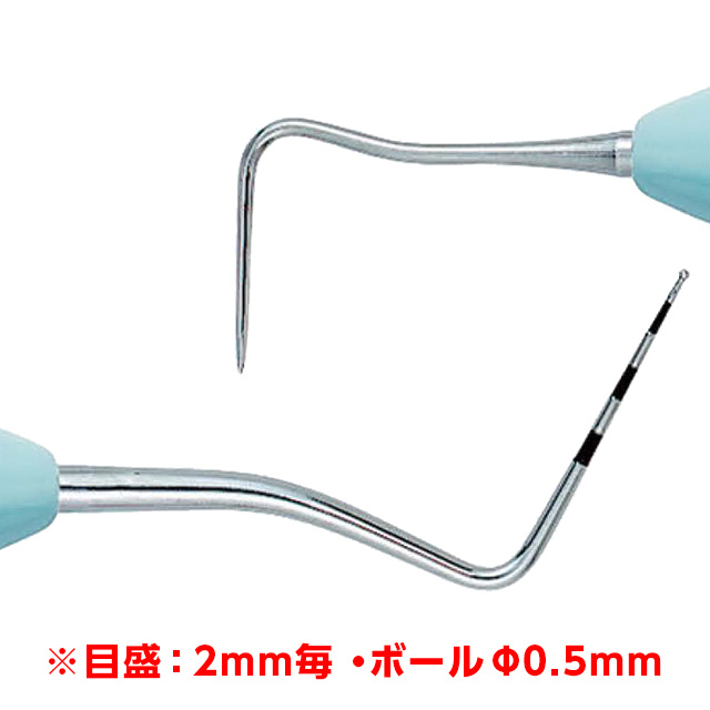 ●商品コード: 9068299●入数: 1本●ハンドルタイプ: Si エルゴノーム(ノーマル)●タイプ: 両頭●目盛: 2㎜ 毎 / ボール Φ0.5㎜●販売名: LM ペリオプローブ●薬事表示番号: 医療機器届出番号27B1X00020221009