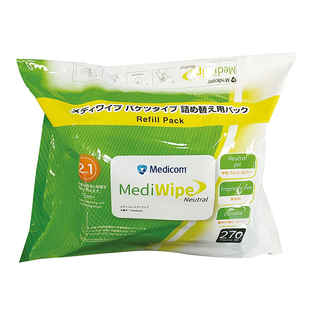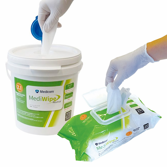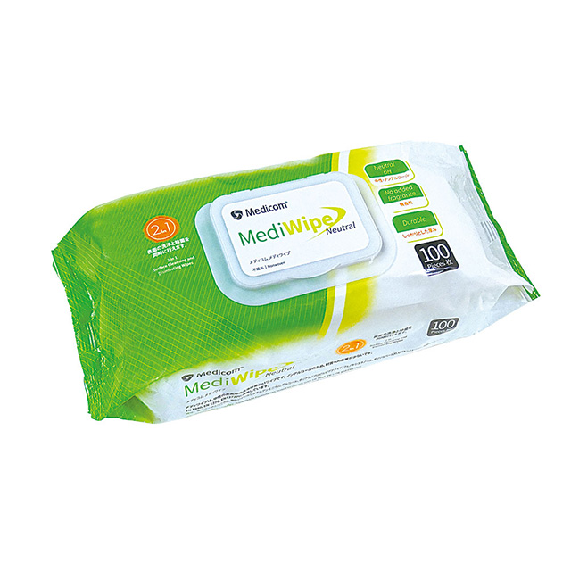 厚手のワイプを採用し拭き取りやすく、環境表面の洗浄と除菌が同時に行えます。