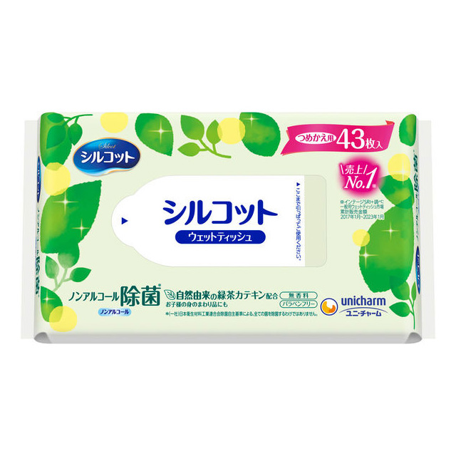 ツーンとしたアルコール臭がない、植物由来の除菌成分配合の手・口まわりに安心して使える除菌タイプのウェットティッシュ。