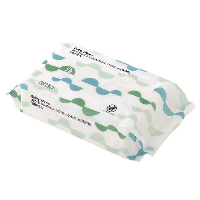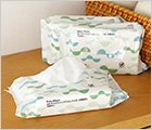 薬液量を極限まで抑えた、99.9%純水使用のシンプルなパッケージのおしりふき。