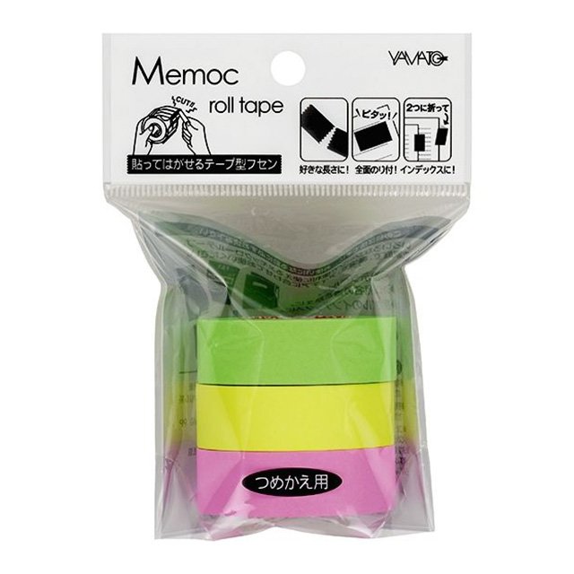 鮮やかなカラーの、貼ってはがせる全面粘着剤付きロール状ふせんの詰替え用。