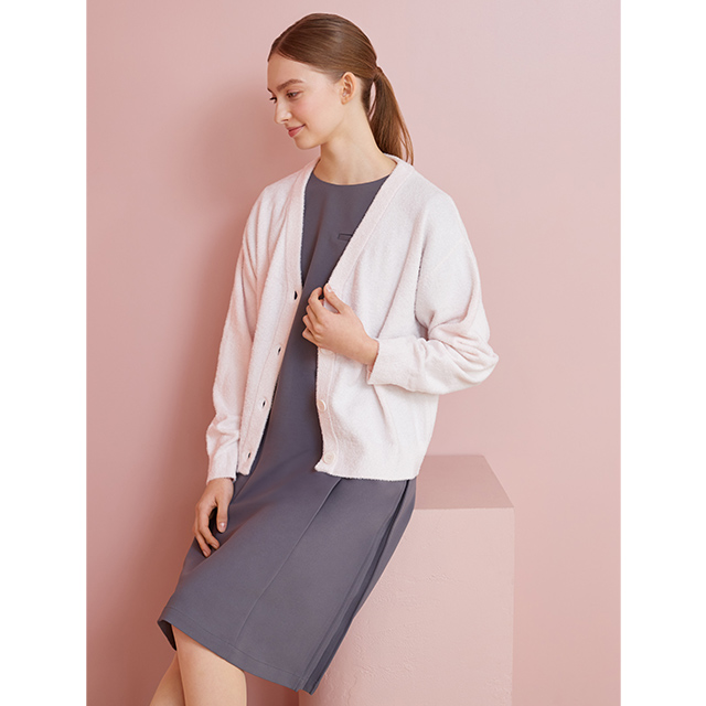 短い丈で動きやすい。オンオフ問わず、着た瞬間に癒される至極の着心地のカーディガン。