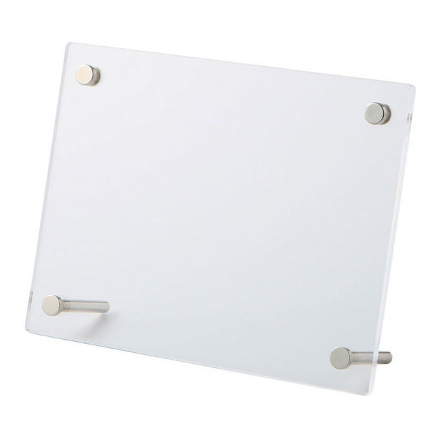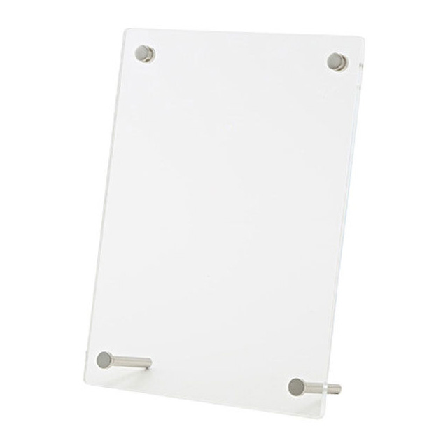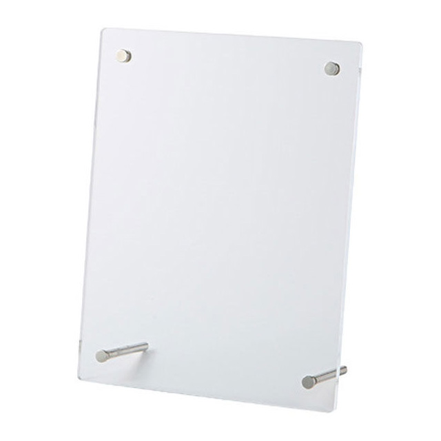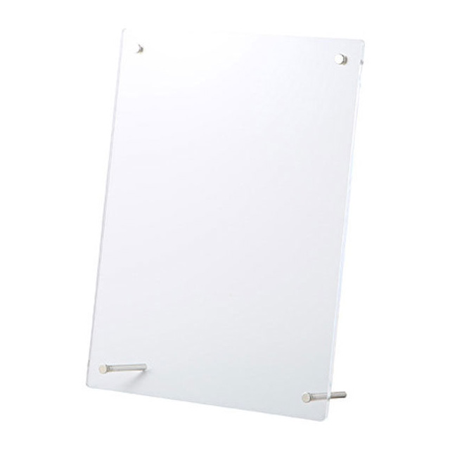 透明アクリル板を使用した、金具付きスタンドタイプのフレーム。