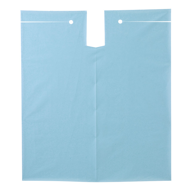 ロール形状で収納スペースをとらない!エプロンクリップ不要の大判ひも付きエプロン。