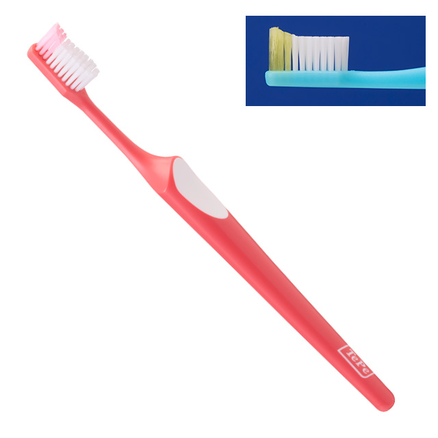 滑りにくいハンドルが特徴のTePe社製歯ブラシ。