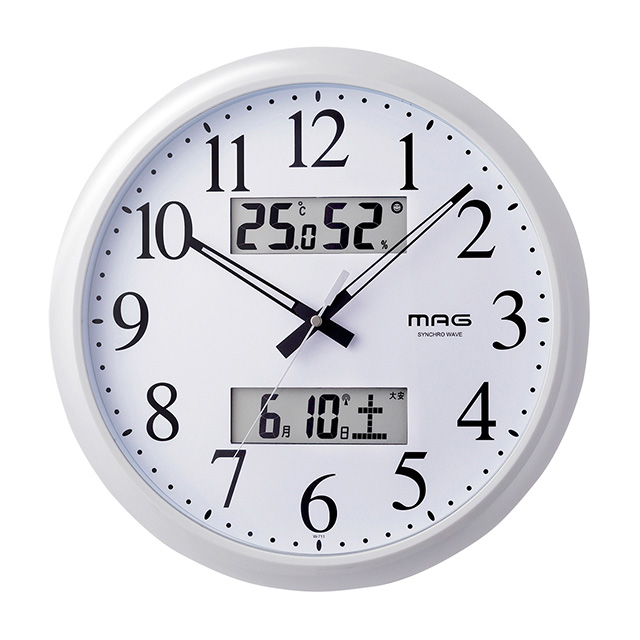 壁掛け式の電波時計。温度湿度表示でお部屋の環境管理ができます。