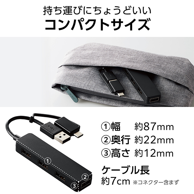 | アップストリーム(パソコン側)ポート数 | USB-Aプラグ×1 ※USB Type-C(TM)変換アダプター付き |