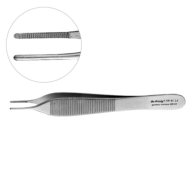 縫合時の歯肉や切開歯肉の保持、固定に使用できる外科用ピンセットです。
