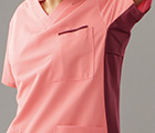 機能的なパターン設計で動きやすく、脇下のベンチレーションが快適なプルオーバータイプの男女兼用スクラブ。