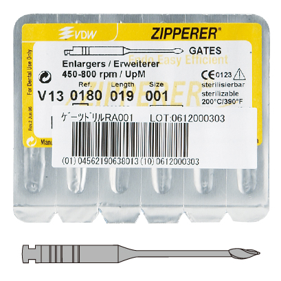 ●商品コード: 8006414●入数: 6本●サイズ: 4●先端径: 1.10mm●全長: 32mm●作業部: 19mm●販売名: ジッペラー ゲーツ ドリル●薬事表示番号: 医療機器承認番号21900BZX00453000