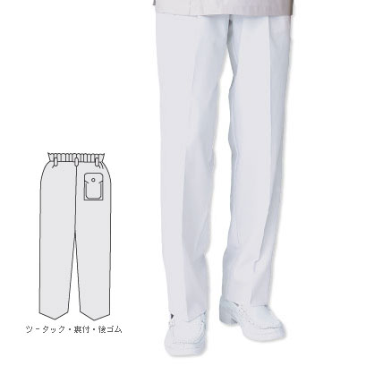ツータック・裏付・後ゴム、両脇と後ろポケット付