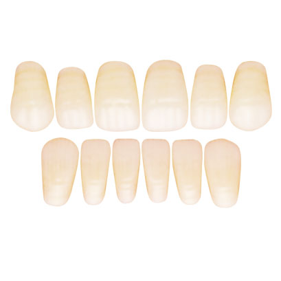 ●商品コード: 3686357●入数: 6歯×5組●部位: 上顎●モールド(形態番号): S S4●シェード: 55●販売名: ピュア●薬事表示番号: 医療機器認証番号219AFBZX00007000